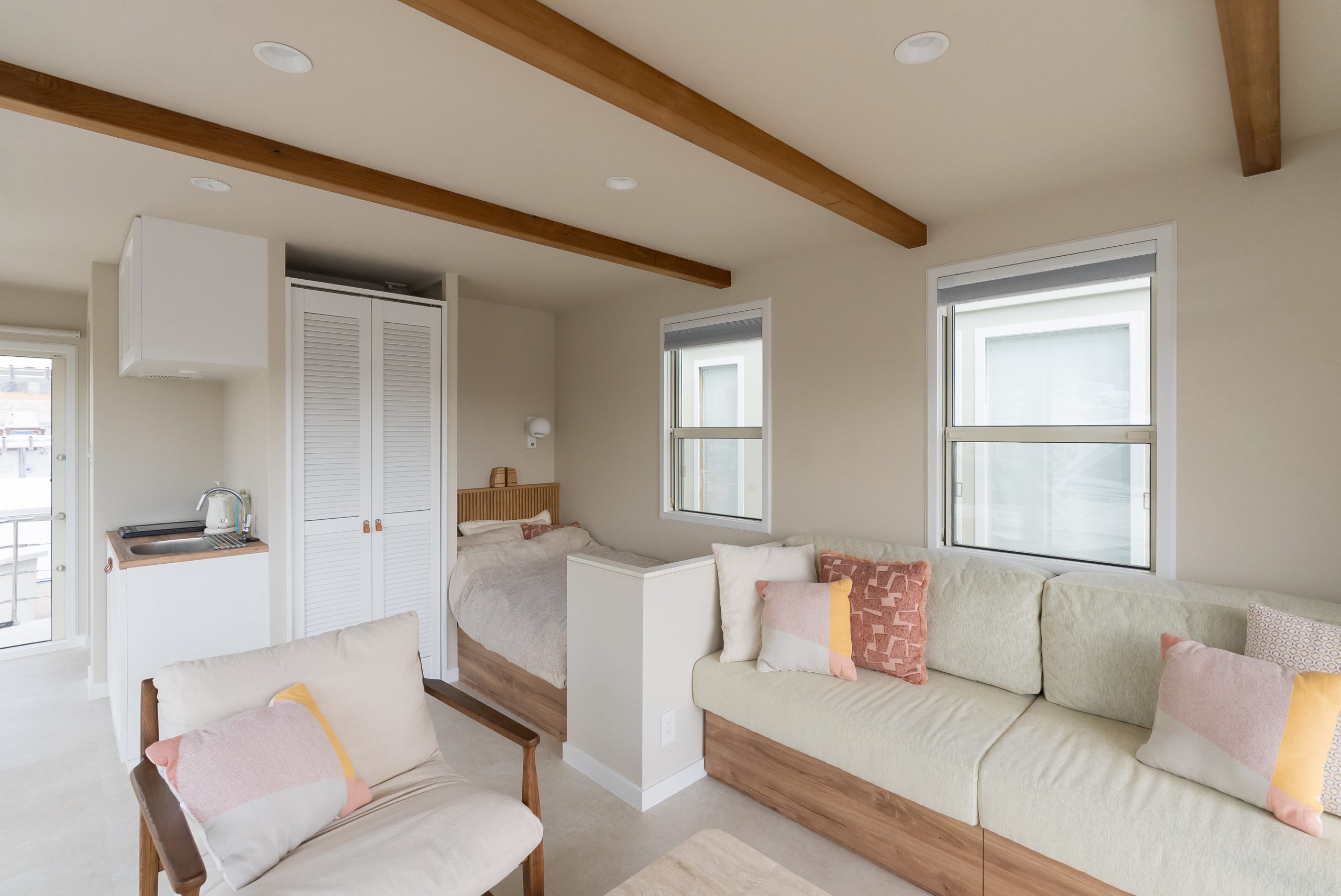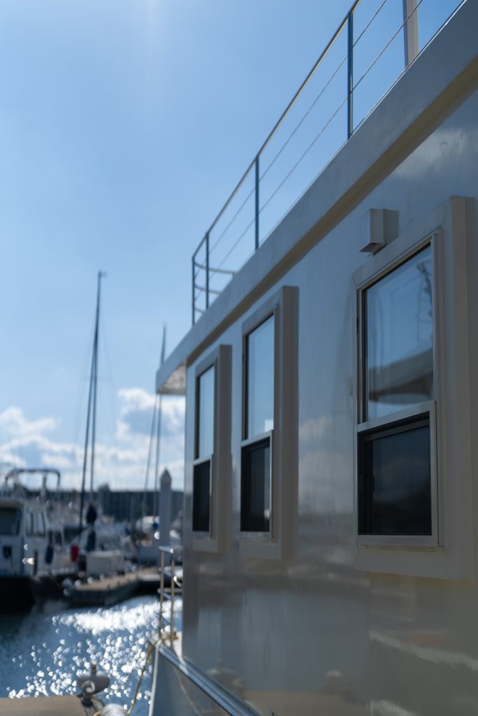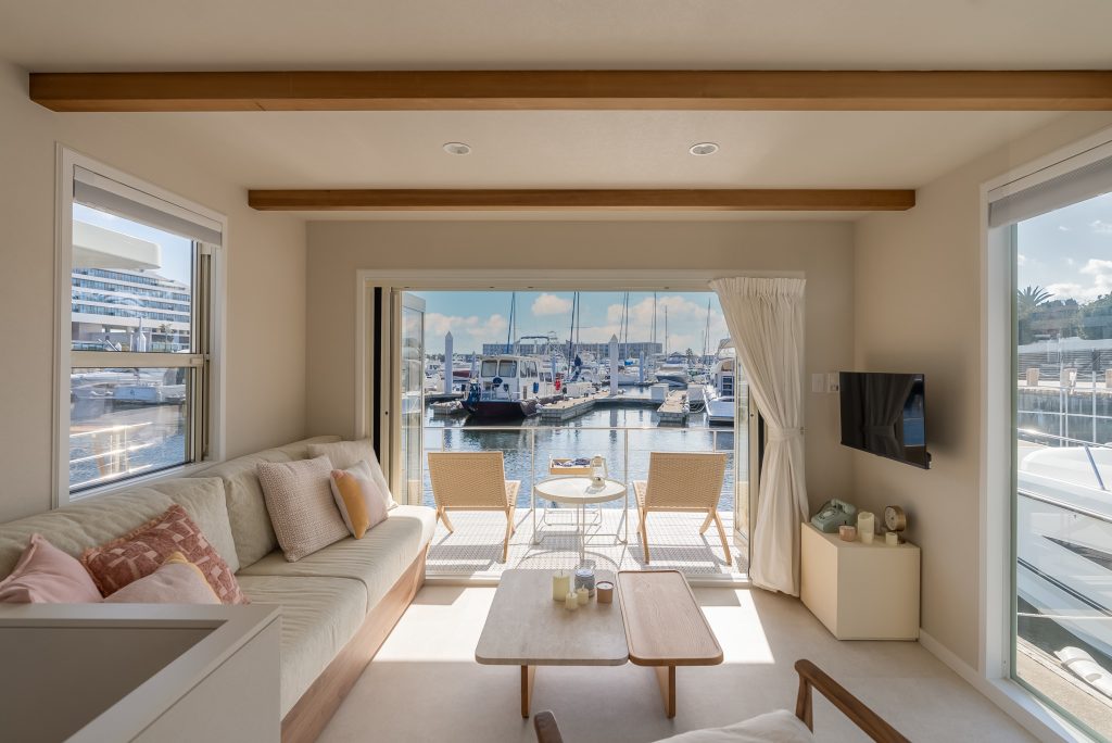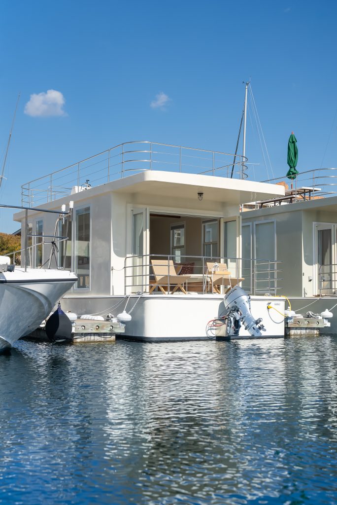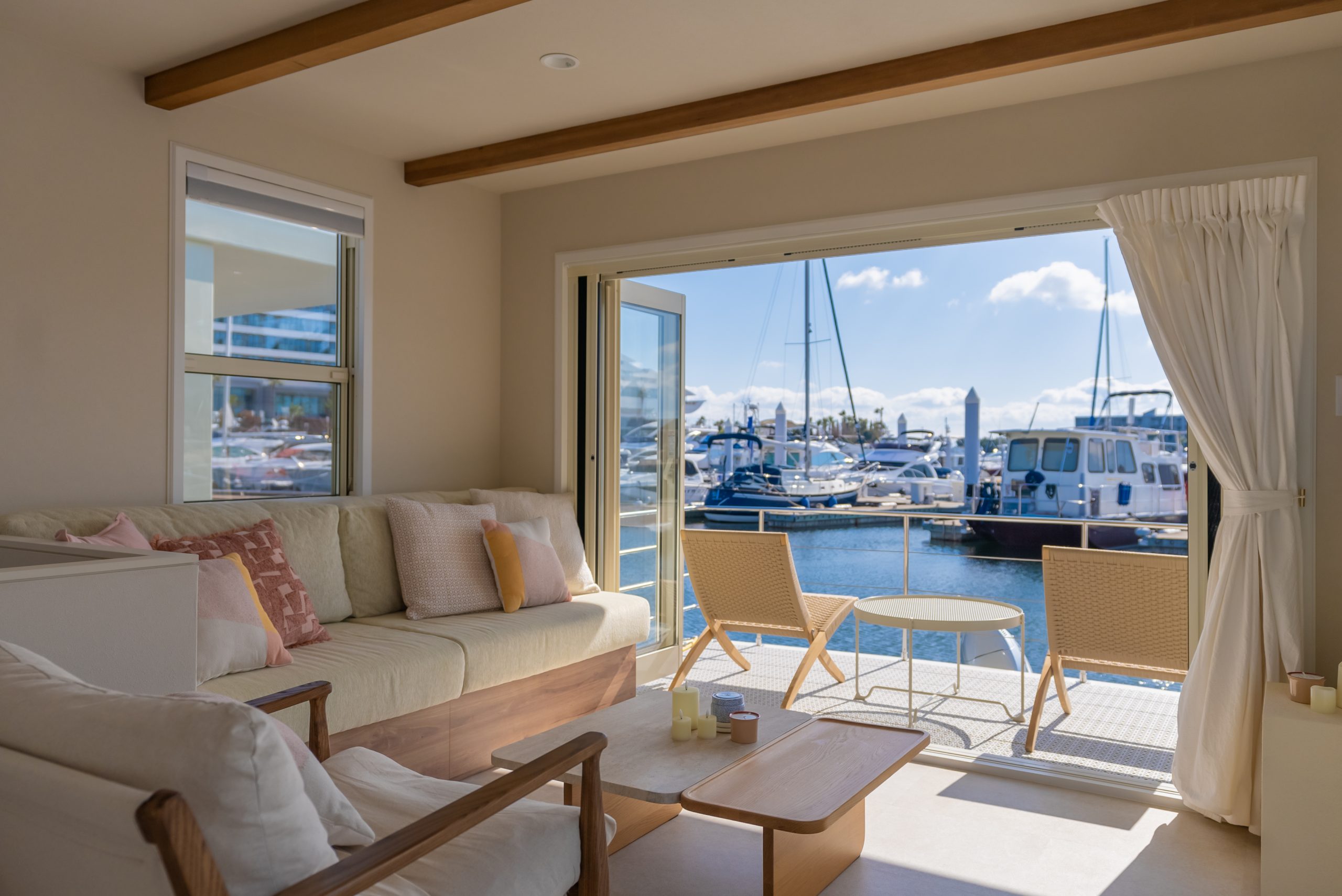 マリーナで楽しむ、水辺で暮らす、を目的とした浮かぶ部屋。